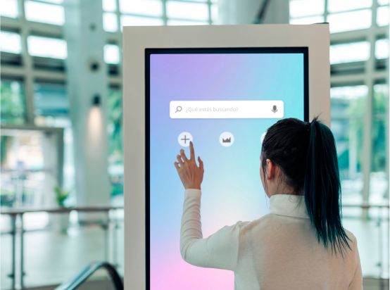 Las pantallas interactivas permiten a los clientes buscar información específica, como ubicaciones de tiendas, horarios de eventos, y promociones actuales, mejorando la satisfacción del cliente y reduciendo la carga de trabajo del personal de atención.